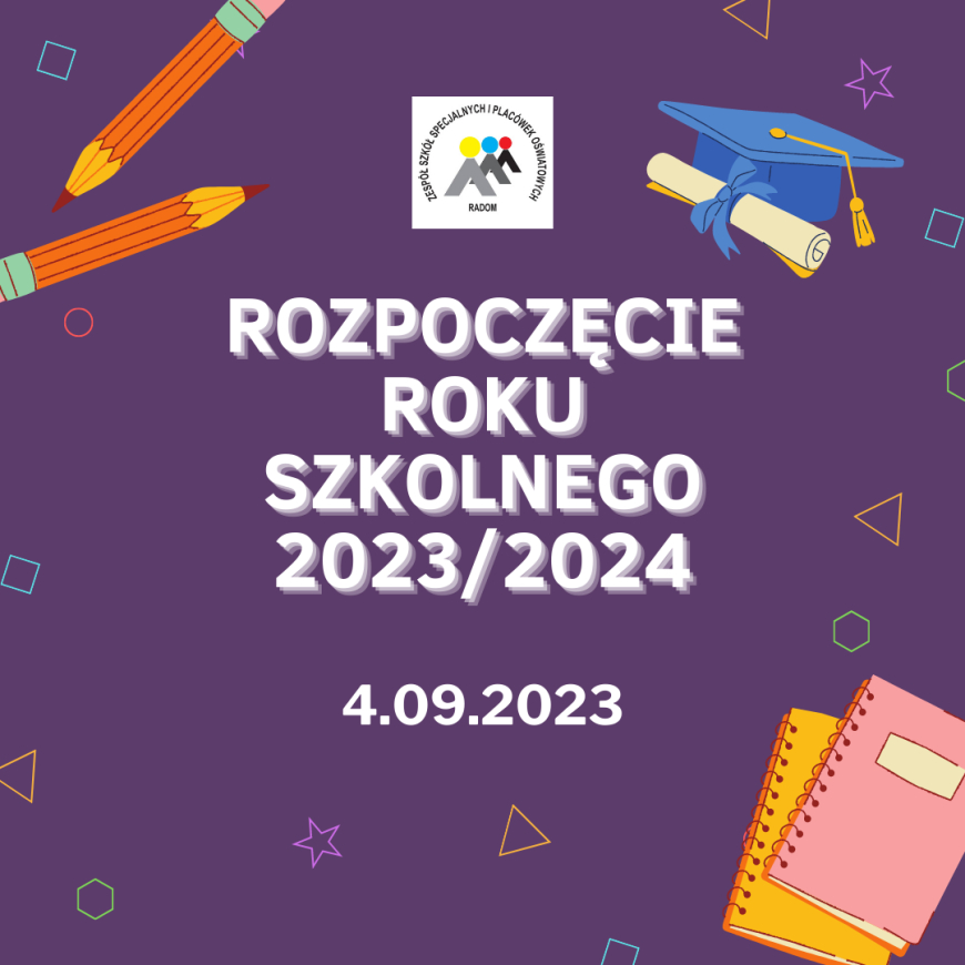 Dyrektor Zespołu Szkół Specjalnych i Placówek Oświatowych w Radomiu informuje, że rozpoczęcie roku szkolnego 2023/2024 odbędzie się w dniu 4 września 2023 roku według następującego porządku: